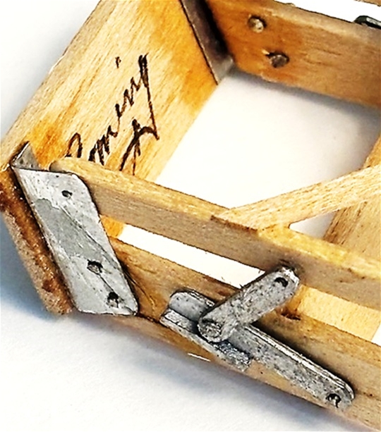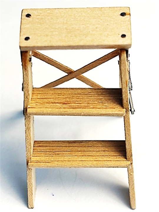 Working Folding Step Ladder. Metal braces hold ladder open in place. Detailing with metal braces and nails show the attention to detail the artist has.