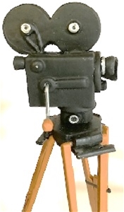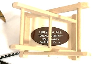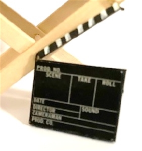Rare find! This set was given out to attendees at the 1982 NAME 10th Anniversary National Houseparty! The stunning camera folds up. The camera is painted metal with removeable handle. The director's chair is fabric and wood. And, the tiny movie clapperboard completes the scene! The pieces are handmade but are not artist signed.