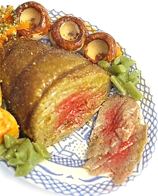 Lesley Ann Burgess, The English Kitchen created the most delectable miniature food. For more than 30 years her work was highly prized and collected. You can see her tasty treats displayed in the most prestigious dollhouses and collections all over the world. This early piece was purchased in 1995 direct from the artist in London.