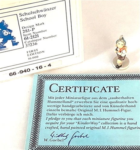 Robert Olszewski's, Goebel M.L. Hummel Collection, School Boy This charming cast hand painted piece numbered 281-P may be displayed just about anywhere you need a special detail.