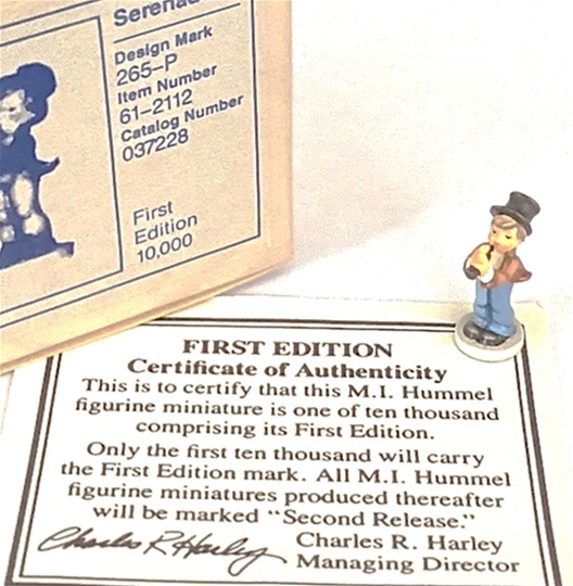 Robert Olszewski's, Goebel M.L. Hummel Collection, Serenade. This charming cast hand painted piece numbered 265-P may be displayed just about anywhere you need a special detail.